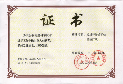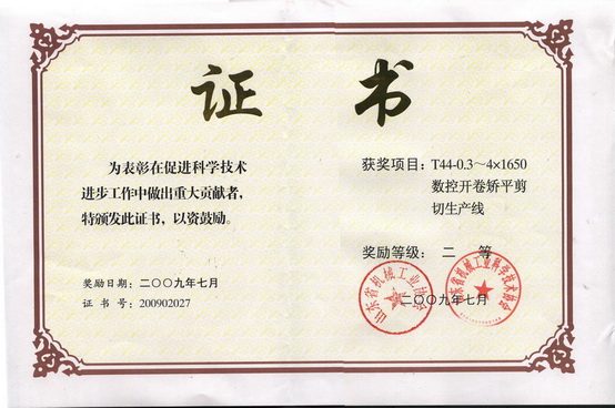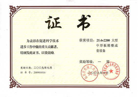 9月28日,全省机械工业科技创新与信息化工作会议在济南召开,来自全省机械行业的近100名代表参加了会议。公司副总经理朱洪臣代表公司参加会议,并上台领取了获奖证书。我公司一次申报的四项技术成果全部获奖,其中,“25.4×2200大型中厚板精整成套设备”获一等奖;“T44-0.3~4×1650KY中国官方网站”和“板材开卷矫平剪切生产线”(标准)获二等奖;“TX160型落地镗铣床”获三等奖,开创了省机械工业协会(原省机械厅、省机械工业办公室)和省机械工业科学技术协会的科技进步奖评审历史的先河。